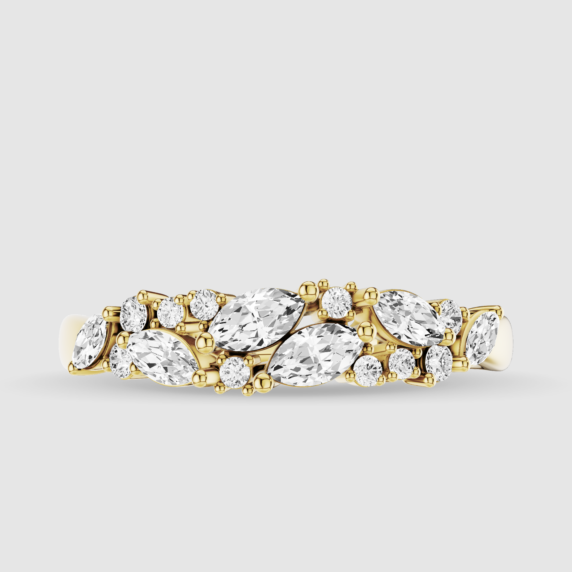 The intricacies of nature and skillful craftsmanship came together to create the picturesque Bella band. Featuring the synergy of lab-grown marquise and round diamonds in a prong setting, the band's floral design exudes grace and beauty. This is an ideal piece for those who appreciate intricate details and timeless elegance.