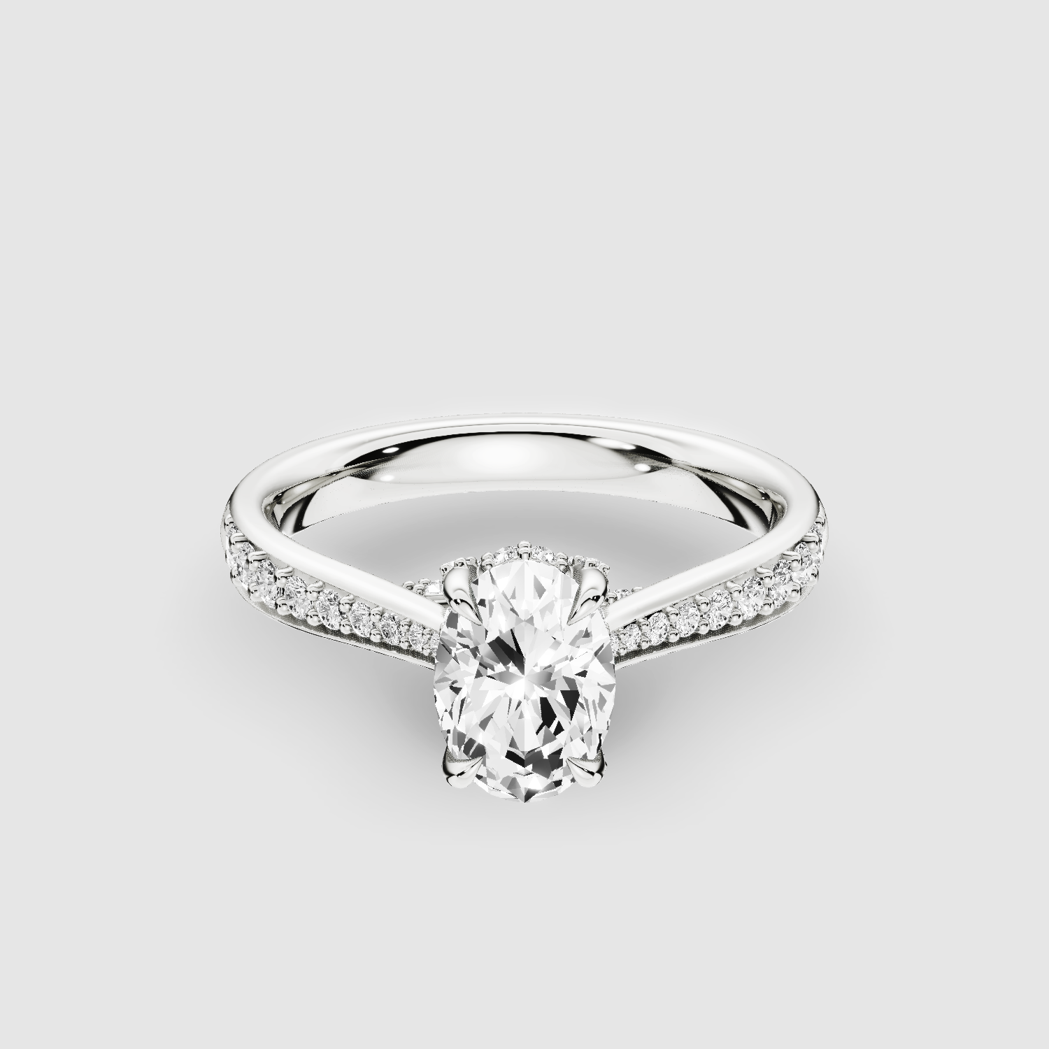 An engagement ring for when you’re ready to cross the bridge from blithely single to blissfully wedded. With ethical, lab-grown diamonds, it's studded criss-cross bridge supports a stunning solitaire with its hidden halo. The tapering, pavé-set diamond shank heightens the radiance of this timeless masterpiece.