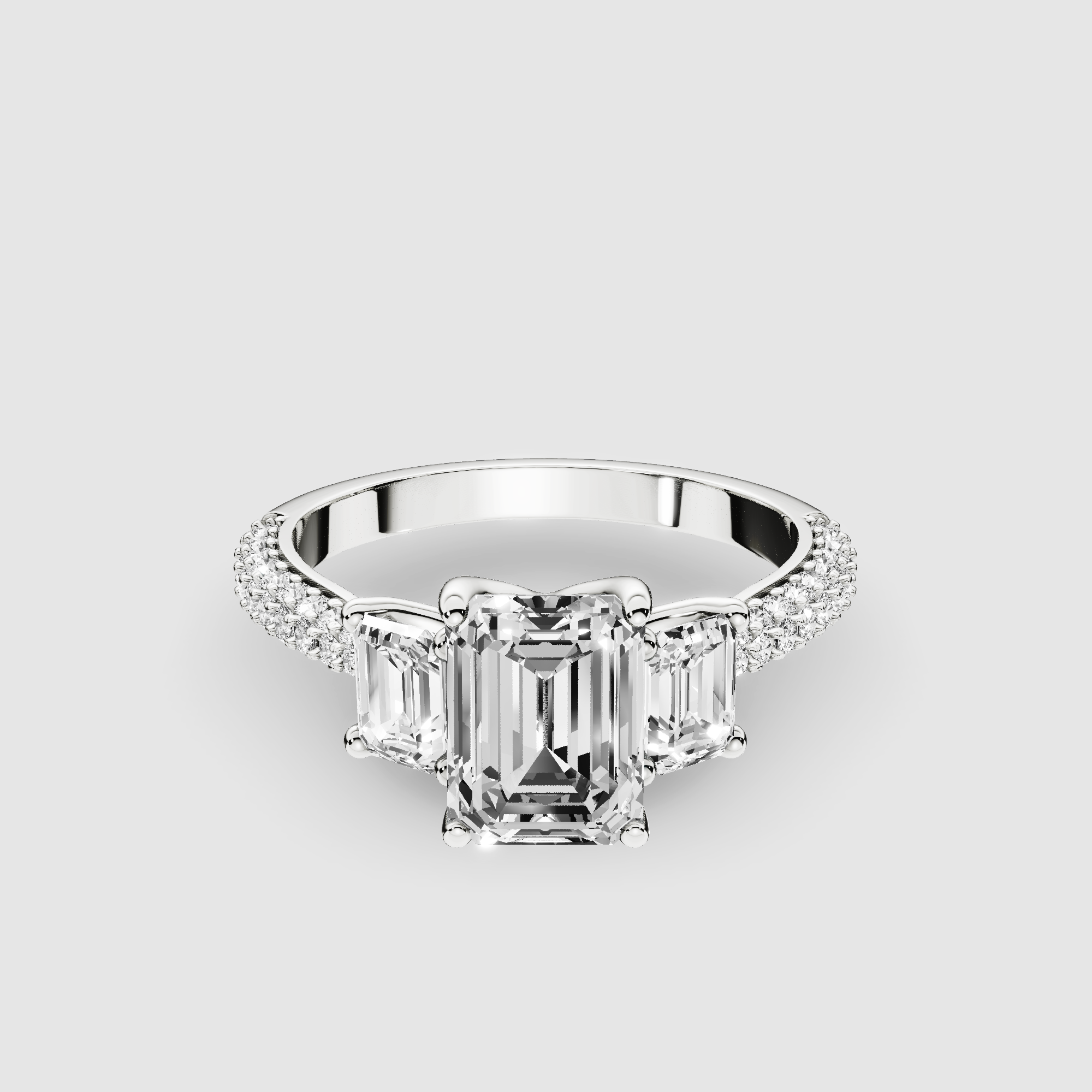 Dome Pave Trilogy Solitaire Ring