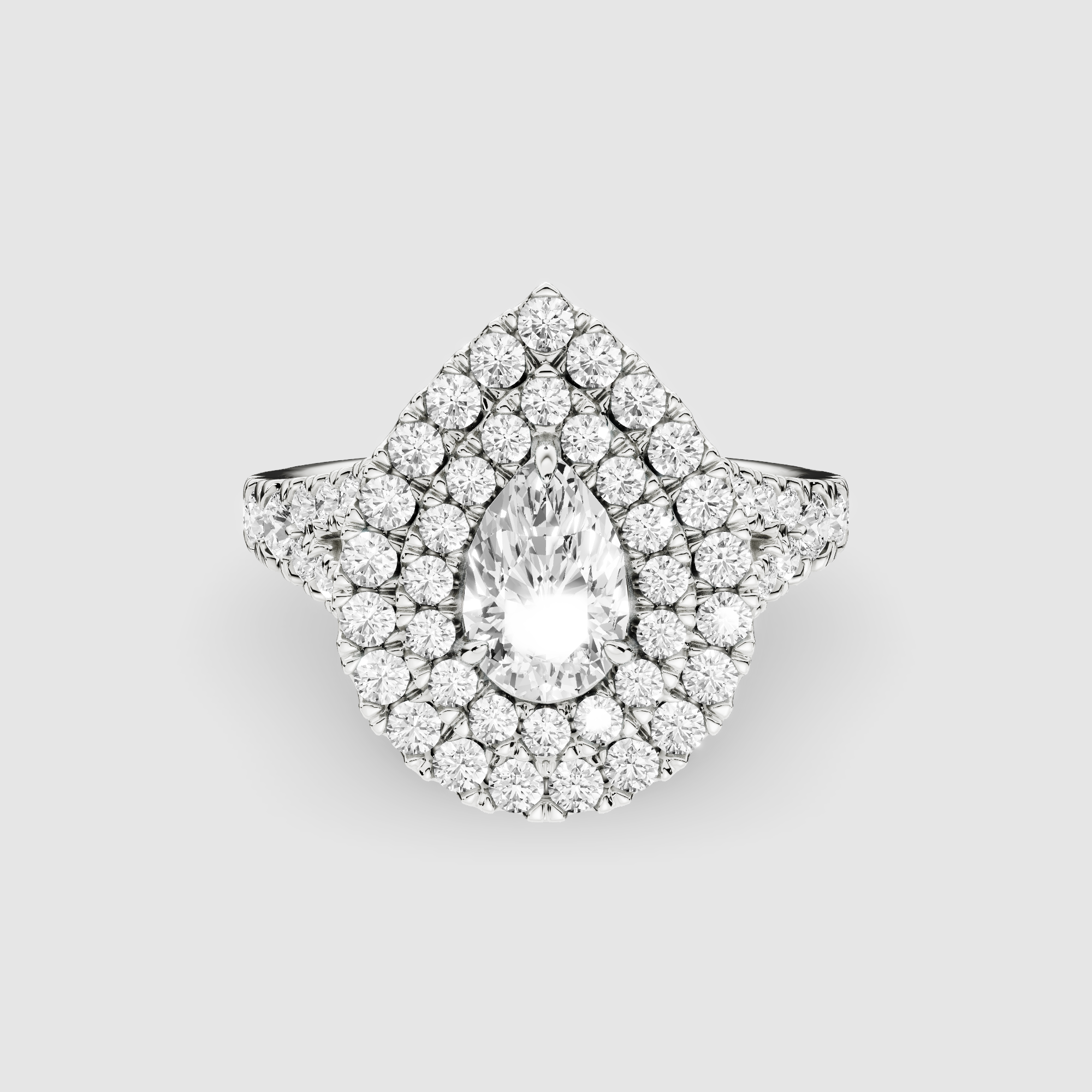 Inspiration: When it's meant to be, two hearts find each other unfailingly, only to become inseparable. The Double Halo Solitaire ring promises eternal love, destined to wrap her in its brilliant glow.