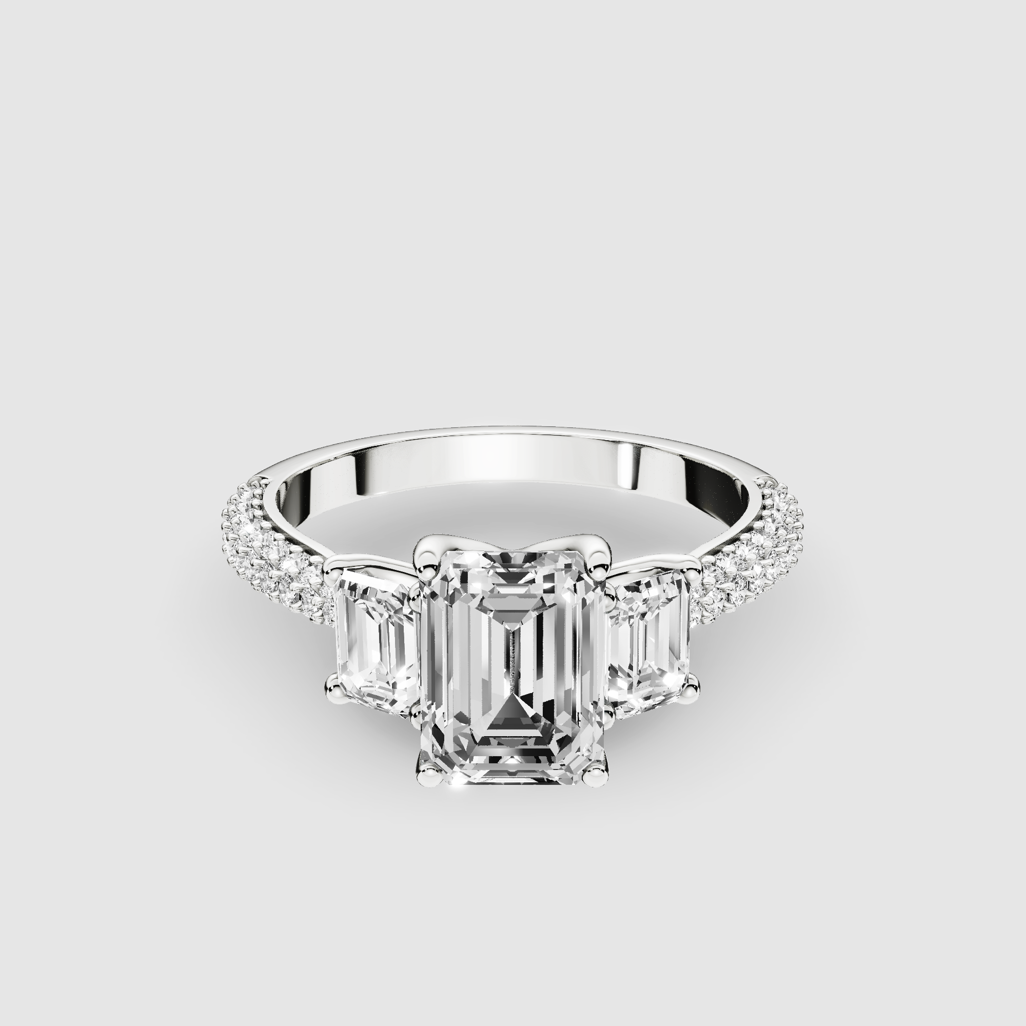 14K White Gold | EF VS IGI certified | 2.50 ctw Emerald Cut Lab Grown Diamond Prong Three Stone Ring
