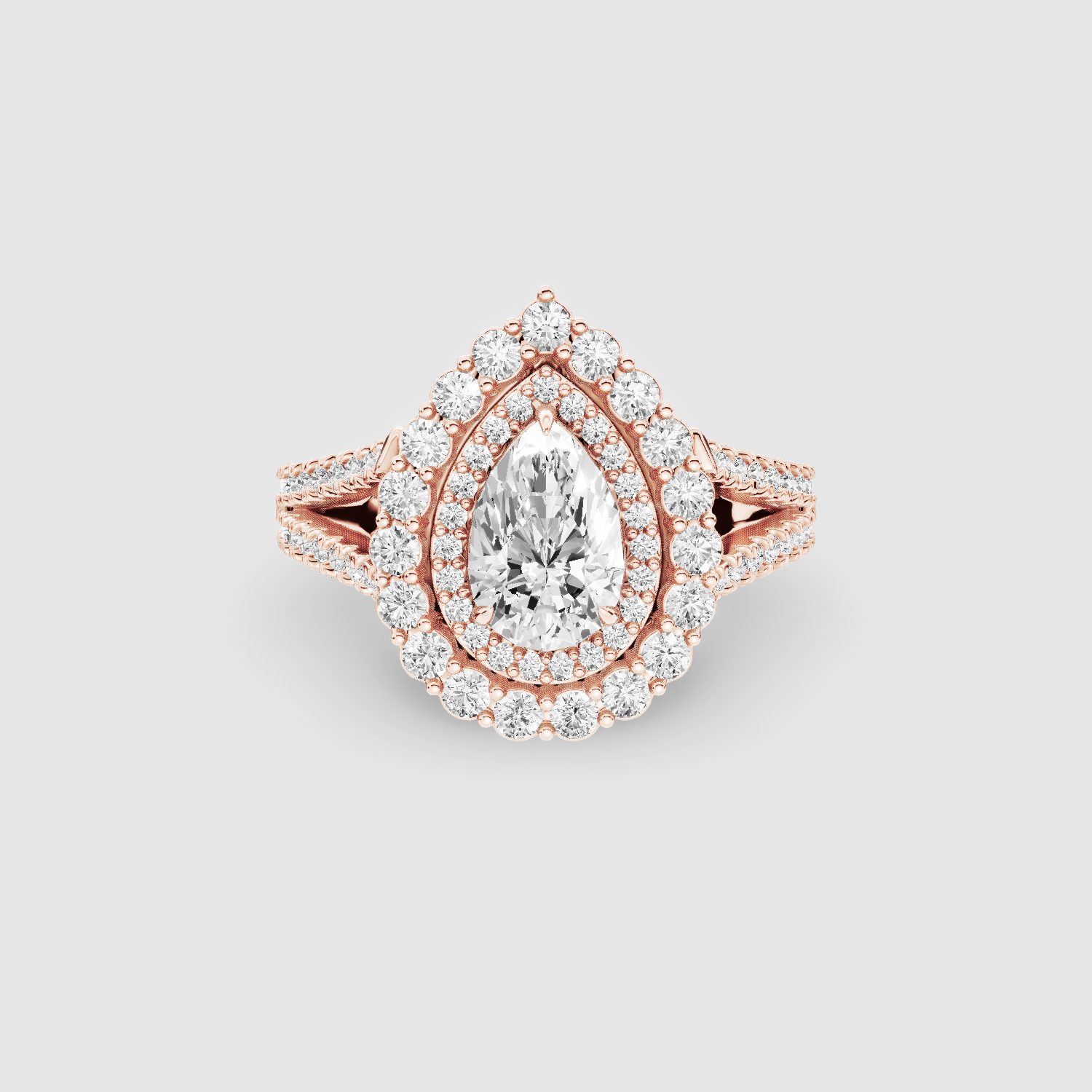 18K Rose Gold | EF VS IGI certified | 2.00 ctw Pear Lab Grown Diamond 6 Prong Halo Ring
