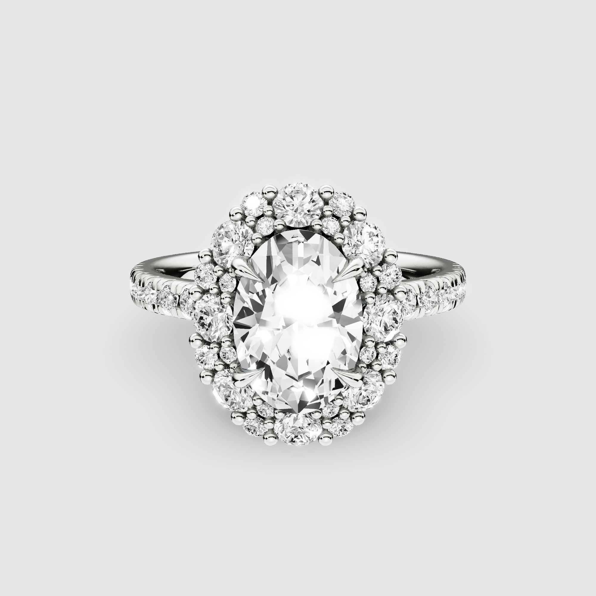 Inspiration: This ring mirrors the charm of moonlit garden: a center stone like the moon, diamonds like petals. The split shank mimics vine tendrils, with a hidden diamond whispering secrets of eternal love, akin to a hidden spring in a forest's heart.