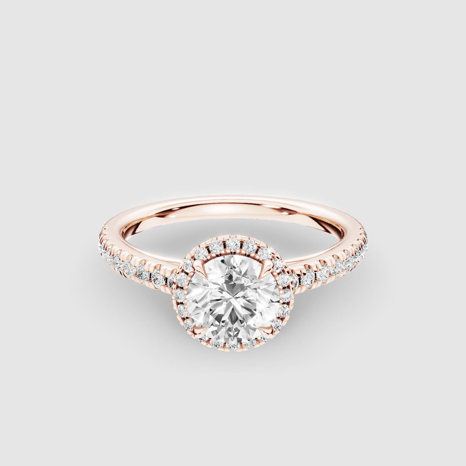 This lab-grown diamond engagement ring is a vision of timeless beauty. It features a central brilliant-cut solitaire on a pavé-set shank. The two scintillating halos multiply the ring's radiance from every direction.
