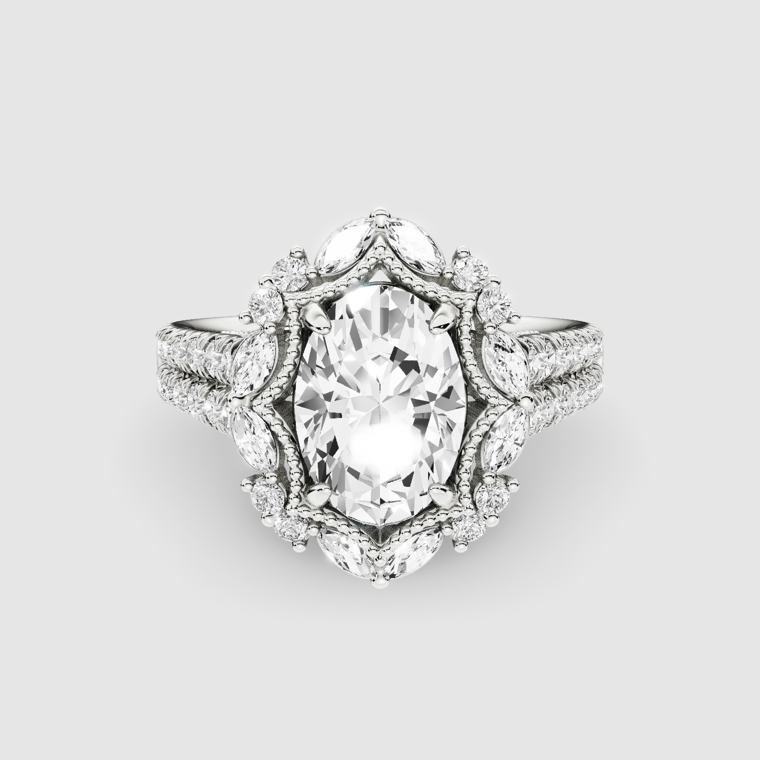 Inspiration: We bring back the whimsical sentiment of a bygone era with this embellished solitaire ring worthy of your lady love and her regal persona.